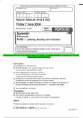 Pearson Edexcel Level 3 GCE Spanish Advanced PAPER 1: Listening, Reading & Translation JUNE 2024 Question Paper & Mark Scheme