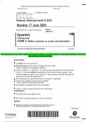 Pearson Edexcel Level 3 GCE Spanish Advanced PAPER 2: Written response to works and translation JUNE 2024 Question Paper & Mark Scheme