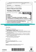 Edexcel Level 3 GCE Urdu Advanced PAPER 2: Translation into Urdu and Written response to worksJune 2024 Question Paper and Final Mark Scheme { Verified}Pearson