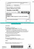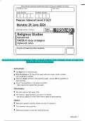 Pearson Edexcel Level 3 GCE Religious Studies Advanced PAPER 2: Religion and Ethics JUNE 2024 Question Paper& Mark Scheme