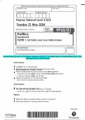 Pearson Edexcel Level 3 GCE Politics Advanced PAPER 1: UK Politics and Core Political Ideas MAY 2024