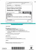 Pearson Edexcel Level 3 GCE Politics Advanced PAPER 2: UK Government and Non-core Political Ideas JUNE 2024 Question Paper & Mark Scheme