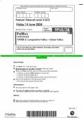 Pearson Edexcel Level 3 GCE Politics Advanced PAPER 3: Comparative Politics – Global Politics JUNE 2024 Question Paper & Mark Scheme