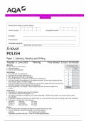 AQA A-LEVEL POLISH Paper 3 Listening, Reading and Writing JUNE 2024 Question Paper & Mark Scheme