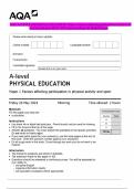 AQA A-LEVEL PHYSICAL EDUCATION Paper 1 Factors affecting participation in physical activity and sport MAY 2024 Question Paper & Mark Scheme