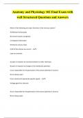 Anatomy and Physiology 102 Final Exam with well Structured Questions and Answers