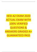 HESI A2 EXAM 2020 ACTUAL EXAM WITH 100% VERIFIED QUESTIONS & ANSWERS GRADED A+