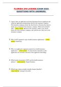 This document contains a full collection of practice questions and answers for the Florida Health Agent 2-40 licensing exam. It covers major topics such as health insurance basics, medical expense policies, underwriting, policy delivery, regulatory standards, and contract law. The material provides extensive Q&A items that help students review exam-relevant concepts and reinforce understanding of state-specific insurance regulations. It is suitable as a complete study and revision aid for candid...