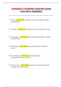 This document contains the full set of questions and correct answers for the Diamond & Diamond Grading Exam 2025. It covers crystal structure, mining methods, optical properties, cutting and polishing terminology, grading criteria, historical context, and diamond industry practices. It provides an extensive glossary of diamond-related terms and definitions, making it a comprehensive study and revision resource for exam preparation.