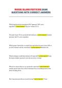 This document contains a thorough collection of questions and correct answers for the Rhode Island Pesticide Applicator Exam. It covers pesticide formulations, labeling, safety and PPE, storage and disposal, environmental impacts, IPM principles, resistance management, applicator licensing, and state and federal regulatory requirements, making it well suited for exam preparation and review.