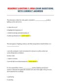 This document contains a complete set of Roadway Lighting 1 IMSA exam questions with correct answers, covering roadway lighting design, installation, electrical safety, maintenance, and applicable standards. It is intended for technicians, inspectors, and professionals preparing for the IMSA Roadway Lighting 1 certification exam, aligned with industry practices and safety regulations.