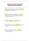 This document contains the full set of questions and correct answers for the 2025 Florida Core Pest Control Exam, covering PPE requirements, pesticide safety, storage, transportation, formulations, IPM strategies, environmental protection, toxicity, labeling, and emergency procedures. It provides comprehensive, exam-aligned content designed to prepare applicators for Florida licensing.