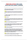 This document contains a complete collection of Perry Real Estate final exam questions with correct, clearly stated answers, covering key topics tested on real estate licensing exams. It includes contract law, property interests, zoning, fair housing, agency relationships, financing, deeds, liens, and brokerage regulations, making it a thorough study and revision resource for final exams and licensing preparation.