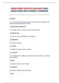 This document provides an extensive collection of Perry Real Estate college-level final exam questions with correct answers, covering the full scope of real estate principles, law, finance, and practice. Topics include property ownership, agency relationships, contracts, leases, zoning, deeds, liens, financing, valuation, fair housing, environmental regulations, and licensing rules, making it a complete study guide for college finals and real estate licensing exam preparation.