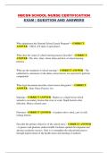 This document provides an extensive set of NBCSN School Nurse Certification Exam practice questions with clear, correct answers covering school health services, pediatric conditions, emergency care, screenings, legal and ethical standards, and developmental theory. It serves as a comprehensive review resource aligned with the NBCSN exam content outline, making it suitable for both initial certification preparation and final exam revision.