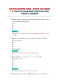 This document provides an extensive practice exam for the APEX NIH Stroke Scale (NIHSS), focusing on Group A patients 1–6. It includes multiple-choice and applied short-answer questions with correct answers and rationales, covering all NIHSS items such as level of consciousness, motor function, language, sensory testing, neglect, and stroke severity interpretation. The material is designed for exam preparation and clinical skill reinforcement for stroke assessment in 2026.