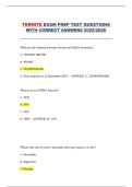 This document contains an extensive collection of termite and WDO exam preparation questions with correct answers, covering Florida termite regulations, inspections, treatments, pesticides, safety requirements, and identification of wood-destroying organisms. It is designed to help students and professionals prepare for termite licensing exams and WDO inspections for the 2025–2026 period. The material is suitable for revision, self-testing, and reinforcing key regulatory and technical knowledg...