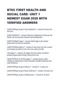 Life stage... i x Exam (elaborations) • 13 pages • by idahtrevis7 • uploaded 2026 Quick View i x BTEC FIRST HEALTH AND SOCIAL CARE- UNIT 1 • BTEC FIRST HEALTH AND SOCIAL CARE- UNIT 1 BTEC BUSINESS- UNIT 3 FINANCE LATEST EXAM VERSION 2026 (0) $25.39 0x sold BTEC BUSINESS- UNIT 3