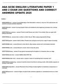 secondary to diabetes mellitus. On follow-up, the patient complains of urine retention and dry mouth. T... i x Exam (elaborations) • 25 pages • by idahtrevis7 • uploaded 2026 Quick View i x ACLS • ACLS AQA GCSE ENGLISH LITERATURE PAPER 1 AND 2 EXAM 200 QUESTIONS AND CORRECT ANSWERS UPDATE 2025 (0) $24.39 0x sold AQA GCSE ENGLISH LITERATURE PAPER 1