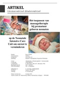 Uitgewerkte scriptie HBO-V afstuderen over het toepassen van massagetherapie bij prematuren op een neonatologie intensive care unit (NICU) om onrust te verminderen en ouderparticipatie te bevorderen passend bij ontwikkelingsgerichte zorg. Waarbij een literatuurstudie is gedaan aan de hand van een PICO vraagstelling en probleemanalyse. Uitgebreid onderzoek in de literatuur naar dit probleem voor de opleiding tot verpleegkundige