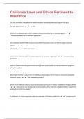 California Laws and Ethics Pertinent to Insurance Questions with 100% Correct Answers | Verified