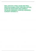 REAL ESTATE U FINAL EXAM AND FINAL PRACTICE EXAM LATEST 2023-2024 ACTUAL EXAM 300 QUESTIONS AND CORRECT DETAILED ANSWERS (VERIFIED ANSWERS) ALREADY GRADED A+