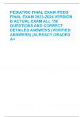 PEDIATRIC FINAL EXAM /PEDS FINAL EXAM 2023-2024 VERSION B ACTUAL EXAM ALL 150 QUESTIONS AND CORRECT DETAILED ANSWERS (VERIFIED ANSWERS) |ALREADY GRADED A+