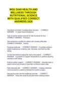 Joycewangui1 On this page, you find all documents, package deals, and flashcards offered by seller joycewangui1. 69 Documents 0 Flashcards 2 Package deal Community 0 Followers 2 Following 71 items Everything Documents Flashcards Package deal Best sold Newest Rating NRCME TEST BANK QUESTIONS WITH CORRECT ANSWERS (0) $10.99 0x sold NRCME TEST BANK QUESTIONS WITH CORRECT ANSWERS 2026 i x Exam (elaborations) • 54 pages • by joycewangui1 • uploaded 2026 Quick View i x Oxford • Nurse 20 HLTH EXAM 1 WITH 100% QUALIFIED CORRECT ANSWERS 2026 (0) $11.49 0x sold HLTH EXAM 1 WITH 100% QUALIFIED CORRECT ANSWERS 2026 i x Exam (elaborations) • 6 pages • by joycewangui1 • uploaded 2026 Quick View i x Oxford • Nurse 12 WGU HESI NUTRITION - D440 (VICTORIA + KAREEM + STEPHANIE STUDY GUIDES) WITH 100% QUALIFIED CORRECT ANSWERS (0) $10.99 0x sold WGU HESI NUTRITION - D440 (VICTORIA + KAREEM + STEPHANIE STUDY GUIDES) WITH 100% QUALIFIED CORRECT ANSWERS i x Exam (elaborations) • 21 pages • by joycewangui1 • uploaded 2026 Quick View i x Oxford • Nurse 2 WGU D440 HEALTH AND WELLNESS THROUGH NUTRITIONAL SCIENCE WITH QUALIFIED CORRECT ANSWERS 2026 (0) $10.49 0x sold WGU D440 HEALTH AND WELLNESS THROUGH NUTRITIONAL SCIENCE WITH QUALIFIED CORRECT ANSWERS 2026 i x Exam (elaborations) • 40 pages • by joycewangui1 • uploaded 2026 Quick View i x Oxford University • nurse 23 CMN 552 EXAM 1 WITH QUALIFIED 100% CORRECT ANSWERS 2026 (0) $18.99 0x sold CMN 552 EXAM 1 WITH QUALIFIED 100% CORRECT ANSWERS 2026 i x Exam (elaborations) • 29 pages • by joycewangui1 • uploaded 2026 Quick View i x Oxford • nurse3 PATHOPHYSIOLOGY NU 545-- UNIT 5-- PULMONARY/ KIDNEY I WITH CORRECT ANWERS 2026 (0) $17.99 0x sold PATHOPHYSIOLOGY NU 545-- UNIT 5-- PULMONARY/ KIDNEY I WITH CORRECT ANWERS 2026 i x Exam (elaborations) • 21 pages • by joycewangui1 • uploaded 2026 Quick View i x Oxford • nurse33 PATHOPHYSIOLOGY CHAPTERS 1-3 WITH QUALIFIED CORRECT ANSWERS 2026 (0) $20.99 0x sold PATHOPHYSIOLOGY CHAPTERS 1-3 WITH QUALIFIED CORRECT ANSWERS 2026 i x Exam (elaborations) • 6 pages • by joycewangui1 • uploaded 2026 Quick View i x Oxford • nurse0 NU545 PATHO STUDY GUIDE UNIT 1 WITH 100% CORRECT ANSWER (0) $17.49 0x sold NU545 PATHO STUDY GUIDE UNIT 1 WITH 100% CORRECT ANSWER i x Exam (elaborations) • 27 pages • by joycewangui1 • uploaded 2026 Quick View i x Oxford • nurse 22 NURSING: THE ART AND SCIENCE OF PERSONE CARE 9TH EDITION 3 EXAM 1 (0) $11.99 0x sold NURSING: THE ART AND SCIENCE OF PERSONE CARE 9TH EDITION 3 EXAM 1 i x Exam (elaborations) • 3 pages • by joycewangui1 • uploaded 2026 Quick View i x Oxford • nurse2 COMPREHENSIVE NURSING CARE PLAN AND CLINICAL PRACTICE GUIDE (0) $22.49 0x sold COMPREHENSIVE NURSING CARE PLAN AND CLINICAL PRACTICE GUIDE 2026 i x Class notes • 5 pages • by joycewangui1 • uploaded 2026 Quick View i x Oxford • nurse4 1 2 3 4 5 ...