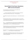 A social worker meets with 85 year old with cognitive impairments who is having financial difficulties. The scoica... i x Exam (elaborations) • 21 pages • by JustTracy • uploaded 2024 Quick View i x Social Work 2 • Social Work 2 Intro to Social Work Final Exam Questions And Answers (0) $9.99 0x sold Intro to Social Work Final Exam Questions And Answers