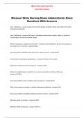 Texas Departme... i x Exam (elaborations) • 4 pages • by JustTracy • uploaded 2024 Quick View i x Nursing Home Administrator Licensure • Nursing Home Administrator Licensure Missouri State Nursing Home Administrator Exam Questions With Answers (0) $9.99 0x sold Missouri State Nursing Home Administrator Exam Questions With Answers
