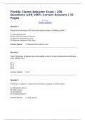 Florida Claims Adjuster Exam | 206 Questions with 100% Correct Answers | 33 Pages