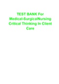 ANS: A i x Other • 206 pages • by Karren • uploaded 2021 Quick View i x Chamberlain College Of Nursing • Nursing. TEST BANK For Medical-SurgicalNursing Critical Thinking In Client Care (0) $13.49 0x sold TEST BANK For Medical-SurgicalNursing Critical Thinking In Client Care1. The nurse is caring for four clients on a medical–surgical unit. Which client should the nurse see initially?