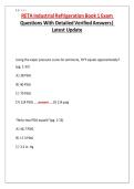 This document contains practice exam questions and verified answers for RETA Industrial Refrigeration Book 1. It covers key concepts such as heat transfer, refrigeration cycles, compressors, ammonia systems, refrigerant properties, pressure–temperature relationships, and system operation. The material includes calculations, conceptual questions, and explanations aligned with topics commonly tested in RETA certification exams. It serves as a comprehensive review resource for students preparing ...