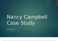 Nancy Campbell Case Study i x Exam (elaborations) • 17 pages • by Knwld17 • uploaded 2021 Quick View i x Nursing course • Nursing course NSG6430 Practicum II: Family Health - Women's Health -NANCY CAMPBELL CERVICITIS ( PowerPoint presentation ) (0) $7.99 0x sold NSG6430 Practicum II: Family Health - Women's Health -