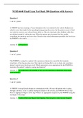 Midterm Study Guide i x Exam (elaborations) • 12 pages • by Knwld17 • uploaded 2021 Quick View i x Nursing course • Nursing course NURS 6501N Week 2 Quiz – Advanced Pathophysiology. Question and Answers (Correct Answers). (0) $7.99 2x sold NURS 6501N Week 2 Quiz – Advanced Pathophysiology. Question and Answers (Correct Answers). i x Exam (elaborations) • 9 pages • by Knwld17 • uploaded 2021 Quick View i x Nursing course • Nursing course NURS 6640 Final Exam Test Bank 300 Questions with Answers (0) $20.99 0x sold NURS 6640 Final Exam Test Bank 300 Questions with Answers i x Exam (elaborations) • 91 pages • by Knwld17 • uploaded 2021 Quick View i x Nursing course • Nursing course PN Comprehensive Predictor 2017 (study topics ¬es) (0) $12.99 0x sold PN Comprehensive Predictor 2017 i x Exam (elaborations) • 17 pages • by Knwld17 • uploaded 2021 Quick View i x Nursing course • Nursing course NURS 6551 MIDTERM EXAM 5. QUESTIONS AND ANSWERS (0) $10.99 0x sold NURS 6551 MIDTERM EXAM 5. QUESTIONS AND ANSWERS i x Exam (elaborations) • 16 pages • by Knwld17 • uploaded 2021 Quick View i x Nursing course • Nursing course NURS 6550 FINAL EXAM – WALDEN UNIVERSITY SUMMER 2018 (0) $15.99 0x sold NURS 6550 FINAL EXAM – WALDEN UNIVERSITY