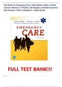 Test Bank for Emergency Care 14th Edition Author: Daniel Limmer, Michael F. O'Keefe | All Chapters Verified Questions And Answers 100% Complete A+ Study Guide