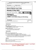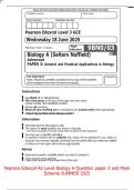 Pearson Edexcel AS Level Biology A Question paper 3 and Mark Scheme SUMMER 2025