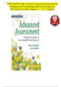 TEST BANK FOR Advanced Assessment Interpreting Findings and Formulating Differential Diagnoses 4th Edition Goolsby Chapters 1 - 22 | Complete