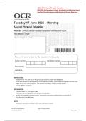 2025 OCR A Level Physical Education H555-03 Socio-Cultural Issues in Physical Activity and Sport verified question paper with attached Marking Scheme. Ideal for exam revision, practice, and marking guidance. Covers OCR A Level Physical Education topics on socio-cultural influences, barriers to participation, ethics, and the impact of technology, media, and policy in sport and physical activity.