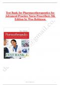 Test Bank for Pharmacotherapeutics for Advanced Practice Nurse Prescribers 5th Edition by Woo Robinson   Table of Contents UNIT I.  THE FOUNDATION 1. The Role of the Nurse Practitioner as Prescriber 2. Review of the Basic Principles of Pharmacology 3. Rational Drug Selection 4. Legal and Professional Issues in Prescribing 5. Adverse Drug Reactions 6. An Introduction to Pharmacogenetics 7. Nutrition and Neutraceuticals 8. Herbal Therapies and Cannabis 9. Information Technology and Pharmacothe...