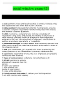 USPS Exam 421 Window Clerk Questions and Answers Latest Update Graded A+ highscore i x Exam (elaborations) • 17 pages • by LECFERYDOC • uploaded 2022 Quick View i x USPS 421 • USPS 421 USPS Exam 421 Window Clerk Practice over 400 Questions and Answers (2022/2023) (0) $12.49 0x sold USPS Exam 421 Window Clerk Practice over 400 Questions and Answers (2022/2023)