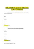 This study guide covers the EMT Final Exam, including core topics such as patient assessment, trauma management, medical emergencies, airway and breathing interventions, CPR and resuscitation, pharmacology basics, vital signs, documentation, and EMS protocols. It includes final exam–style questions with clear, verified answers to support effective preparation for the 2026–2027 training cycle. The material is structured to reinforce EMS knowledge, clinical decision-making, and exam readiness,...