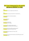 This study guide covers the Fundamental Payroll Certification (FPC) Exam, including topics such as payroll fundamentals, tax calculations, employee classifications, wage and hour laws, benefits administration, payroll reporting, compliance requirements, and recordkeeping. It includes exam-style questions with clear, verified answers to support effective preparation for the 2026–2027 testing cycle. The material is structured to reinforce payroll knowledge, accuracy in calculations, and exam rea...