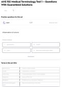 AHS 102 Medical Terminology Test 1 – Questions With Guaranteed Solutions