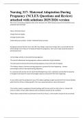 This focused study guide for Nursing 317 offers 100+ NCLEX‑style questions and fully explained answers on maternal physiological and psychological adaptations during pregnancy. Aligned with the 2025/2026 curriculum, it reinforces critical concepts such as immunologic changes, cardiovascular and renal adaptations, fundal height assessment, nutritional requirements, common discomforts (pica, supine hypotension), and prenatal screening signs (presumptive, probable, positive). Ideal for course e...