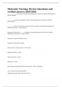 This comprehensive study guide contains over 100 carefully selected and 100% verified questions and answers covering Maternity Nursing and Postpartum Care—perfect for nursing students preparing for exams in 2025/2026. The material is focused, concise, and based on real clinical concepts, including postpartum physiology, assessment techniques, complications, and essential nursing care.