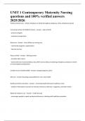 This document contains a comprehensive and verified collection of questions and answers for Unit 1: Contemporary Maternity Nursing, based on the 2025/2026 curriculum. Perfect for nursing students preparing for exams, class assessments, or clinical understanding, this resource offers: