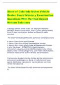 State of Colorado Motor Vehicle Dealer Board Mastery Examination Questions With Verified Expert Written Solutions