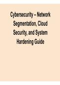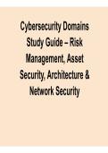 Lectjanine On this page, you find all documents, package deals, and flashcards offered by seller Lectjanine. 663 Documents 0 Flashcards 14 Package deal Community 19 Followers 0 Following 340 Reviews received 259 62 10 2 7 2 days ago • carlymcross Complete Test Bank for Essentials of Maternity, Newborn, and Women’s Health Nursing 6th Edition by Susan Ricci PDF with NCLEX-Style Questions, Chapter Rationales, and Study Guide 2025/2026 This does not have the rationales, which is why I purchased it. 1 week ago • tamaraharris Test Bank for Fundamentals of Nursing 11th Edition – Potter & Perry 2025 1 week ago • pinay1280 Test Bank for Microbiology: An Introduction 14th Edition by Gerard J. Tortora, Berdell Funke & Christine Case – Chapters 1–28 Updated 2025/2026 Complete Microbiology Exam Study Resource 1 week ago • dbmusico Solution Manual For Auditing & Assurance Services A Systematic Approach, 12th Edition By William Messie 2 weeks ago • katieviola Test bank For Applied Pathophysiology for the Advanced Practice Nurse 2nd Edition by Lucie + Show more reviews 675 items Everything Documents Flashcards Package deal Best sold Newest Rating CSX Cybersecurity Fundamentals Quiz Complete Questions and Answers Latest 2025/ 2026 Edition Comprehensive Study Resource with Solution (0) $16.99 0x sold Prepare effectively with this CSX Cybersecurity Fundamentals Quiz complete questions and answers resource with solution. This guide covers essential cybersecurity topics such as risk management, threat identification, access control, and security principles through structured quiz questions and detailed explanations. Updated 2025/ 2026, it helps reinforce foundational knowledge, improve accuracy, and build confidence so you can successfully prepare for cybersecurity exams and strengthen your ove... i x Exam (elaborations) • 6 pages • by Lectjanine • uploaded 2026 Quick View i x Cybersecurity Fundamentals • Cybersecurity Fundamentals Cybersecurity and Software Architecture Key Concepts for IT Students 2025/ 2026 Comprehensive Learning Resource with Solution (0) $15.99 0x sold Build a strong foundation in both cybersecurity and software architecture with this key concepts study guide with solution. This resource covers essential topics such as secure system design, software development principles, threat modeling, authentication, and application security. Updated 2025/ 2026, it provides clear explanations, practical examples, and structured learning to help IT students strengthen technical knowledge, improve problem-solving skills, and confidently apply secure design ... i x Exam (elaborations) • 6 pages • by Lectjanine • uploaded 2026 Quick View i x Cybersecurity & Software Architecture • Cybersecurity & Software Architecture Cybersecurity Architecture Key Terms and Concepts Test Bank 2025/ 2026 Comprehensive Security Exam Resource with Solution (0) $15.99 0x sold Master essential cybersecurity architecture knowledge with this key terms and concepts test bank with solution. This resource covers critical topics such as security frameworks, layered defenses, risk management, system design principles, and network security architecture through targeted practice questions. Updated 2025/ 2026, it provides clear explanations and exam-style content to help you reinforce understanding, improve analytical thinking, and confidently prepare for cybersecurity certific... i x Exam (elaborations) • 10 pages • by Lectjanine • uploaded 2026 Quick View i x Cybersecurity Architecture Key • Cybersecurity Architecture Key Cybersecurity Domains Study Guide Risk Management Asset Security Architecture and Network 2025/ 2026 Comprehensive Security Resource with Solution (0) $15.99 0x sold Strengthen your cybersecurity expertise with this domains study guide covering risk management, asset security, security architecture, and network concepts with solution. This resource explains how to identify, assess, and mitigate risks, protect organizational assets, and design secure architectures and networks. Updated 2025/ 2026, it provides clear explanations, practical examples, and structured guidance to help you improve decision-making, enhance security practices, and confidently apply c... i x Exam (elaborations) • 8 pages • by Lectjanine • uploaded 2026 Quick View i x Cybersecurity Domains • Cybersecurity Domains Cybersecurity Domains Security Operations Software Development and Access Management Study Guide 2025/ 2026 Comprehensive Security Resource with Solution (0) $16.99 0x sold security operations, software development security, and access management with solution. This resource explains key processes such as monitoring, incident response, secure coding practices, identity and access control, and risk mitigation. Updated 2025/ 2026, it provides clear explanations, practical examples, and structured content to help you strengthen security knowledge, improve technical skills, and confidently apply cybersecurity principles in real-world environments. i x Exam (elaborations) • 6 pages • by Lectjanine • uploaded 2026 Quick View i x Cybersecurity Domains • Cybersecurity Domains Cybersecurity Key Concepts CIA Triad Social Engineering Phishing Access Control Encryption 2025/ 2026 Comprehensive Security Study Guide with Solution (0) $15.99 0x sold Build a strong foundation in cybersecurity with this comprehensive study guide covering the CIA triad, social engineering, phishing, access control, and encryption with solution. This resource explains how confidentiality, integrity, and availability work together with real-world examples of common attack techniques and defensive strategies. Updated 2025/ 2026, it provides clear explanations and practical insights to help you recognize threats, strengthen security practices, and confidently appl... i x Exam (elaborations) • 9 pages • by Lectjanine • uploaded 2026 Quick View i x Cybersecurity Key Concepts • Cybersecurity Key Concepts Cyb