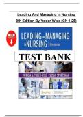 Test Bank for Leading and Managing in Nursing, 8th Edition by Patricia S. & Susan J. Seig COMPLETE TEST BANK | Complete Exam Questions & Answers Yoder-Wise Test Bank for Leading and Managing in Nursing, 8th Edition by Patricia S. & Susan J. Seig COMPLETE TEST BANK | Complete Exam Questions & Answers 2025